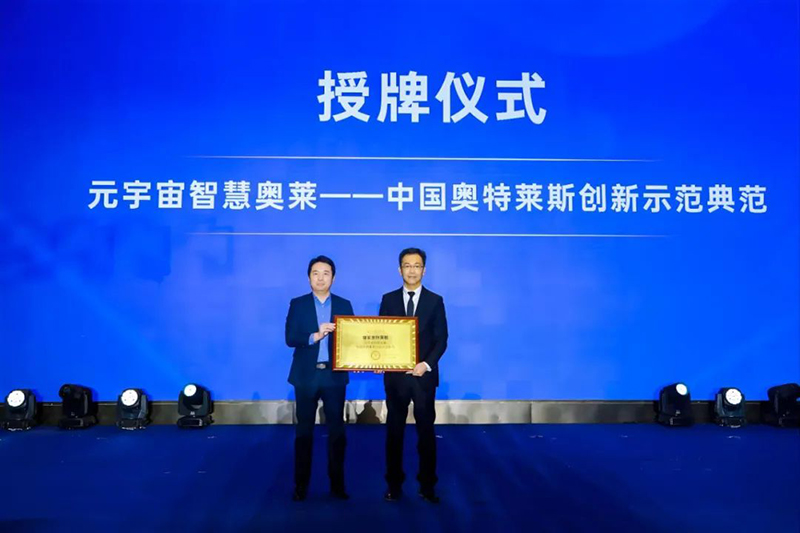 授牌儀式(圖左:中房智庫秘書長鄧明政;圖右:奧特萊斯(中國)研發(fā)策劃中心總經(jīng)理李國偉)