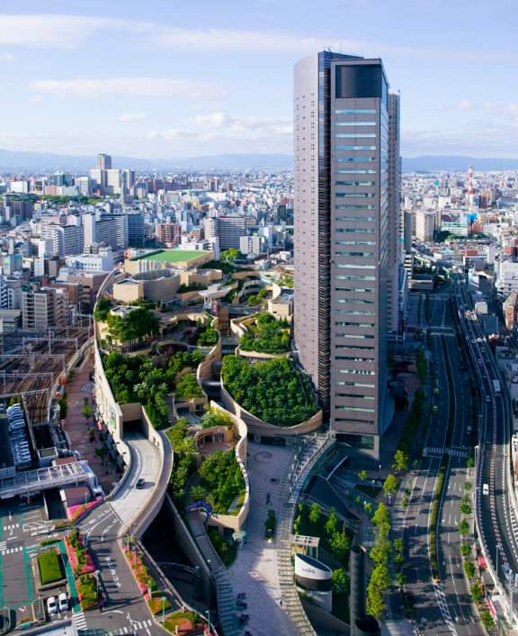 日本難波公園是一座令人驚嘆的都市商業(yè)立體公園,盡管其交通不便,到達性弱,開發(fā)條件較差,但卻因“公園”的理念絕處逢生。從地面直到8層,一座小山一般層層疊疊的綠色坡地一路延綿而上,種滿了各種綠植和花朵,并且還形成了大大小小的退臺式院落,容納著各種小餐廳和公共空間。遠遠望去,在一片城市的鋼筋水泥森林里,難波公園如同綠洲一般的存在。
