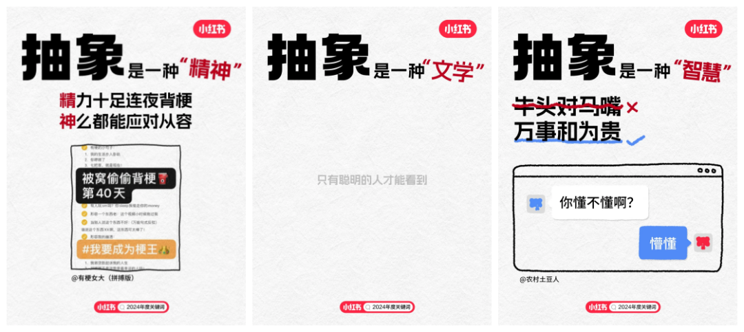 隨著2024年度關鍵詞“搞抽象”在小紅書上的火爆,我們不難發(fā)現(xiàn),無論是用戶對于生活哲學的深度探索,還是對于藝術、文化乃至日?,嵥槭挛锏莫毺卦忈?,都以一種前所未有的熱情被記錄與分享。