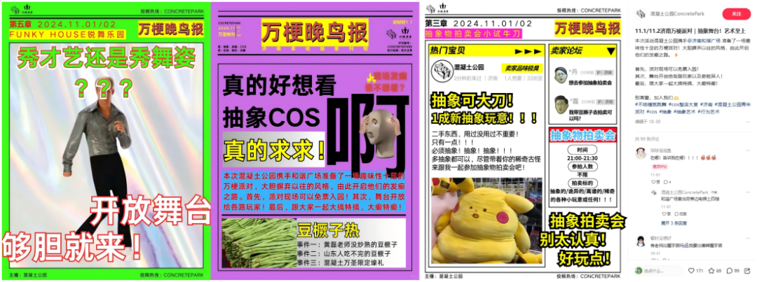 此外,對于購物中心而言,搞抽象也適用于私域生態(tài)及社群運營。對比“正經(jīng)”的輸出式海報,抽象策略更易吸引同頻人群聚集,讓購物中心的每一次發(fā)聲更具話題傳播度,同時博得目標客群的真實好感,也讓“參加購物中心的活動”變成一種生活方式。