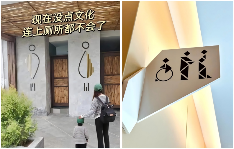 大家都可以玩兒抽象,但也不能太抽象。比如長期被大家吐槽的“上廁所之前要做個閱讀理解”的男女衛(wèi)生間抽象標識,難免讓消費者感覺設計師有些“自嗨”,而并未滿足洗手間應便于尋找的基礎功能需求。