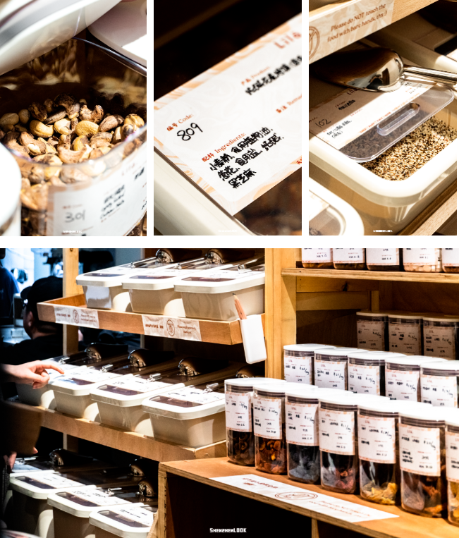 品牌整體適合喜歡搗鼓酸奶碗這類輕食的消費者,品類多,逛一次基本就能把材料買齊。從店名也能看出,Lila推崇零浪費、減碳等環(huán)保理念,因此來這里購物,是需要自帶容器。按需取量,稱重結(jié)算。