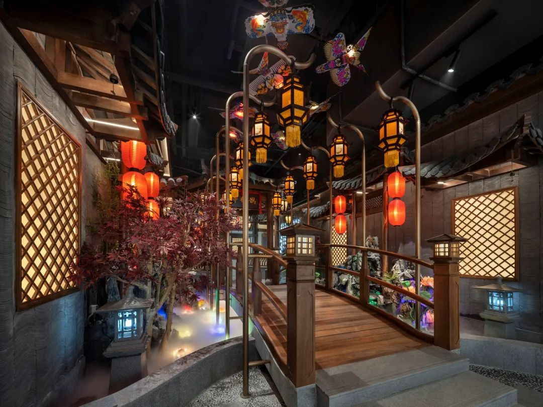 南京建鄴吾悅廣場(chǎng)B1層秀河坊以秦淮河為靈感,首創(chuàng)國(guó)內(nèi)400米室內(nèi)水系長(zhǎng)廊,其中秀河坊主題空間分為室內(nèi)水街與室外水街兩部分,其中室內(nèi)水街以水為軸,提煉秦淮河兩岸的廊、軒、閣元素融入其中,串聯(lián)船塢燈市、曲溪軒流、摩扇亭三大特色場(chǎng)景,中間穿插了煙水橋、隙月橋、文樞橋、花雪橋四大特色連橋,巧妙還原了具有老南京記憶的文化場(chǎng)景。位于歷史文化名鎮(zhèn)新場(chǎng)鎮(zhèn)的上海新環(huán)廣場(chǎng),其建筑設(shè)計(jì)結(jié)合了現(xiàn)代手法與傳統(tǒng)元素,低區(qū)采用黑白陶土掛板線條,抽象表現(xiàn)“上海石庫(kù)門(mén)”歷史建筑的特征,而頂部的圓環(huán)體量玻璃幕墻則展現(xiàn)了當(dāng)代設(shè)計(jì)的通透感,這種古今交融的設(shè)計(jì)致敬傳統(tǒng)的同時(shí)也前瞻未來(lái)。